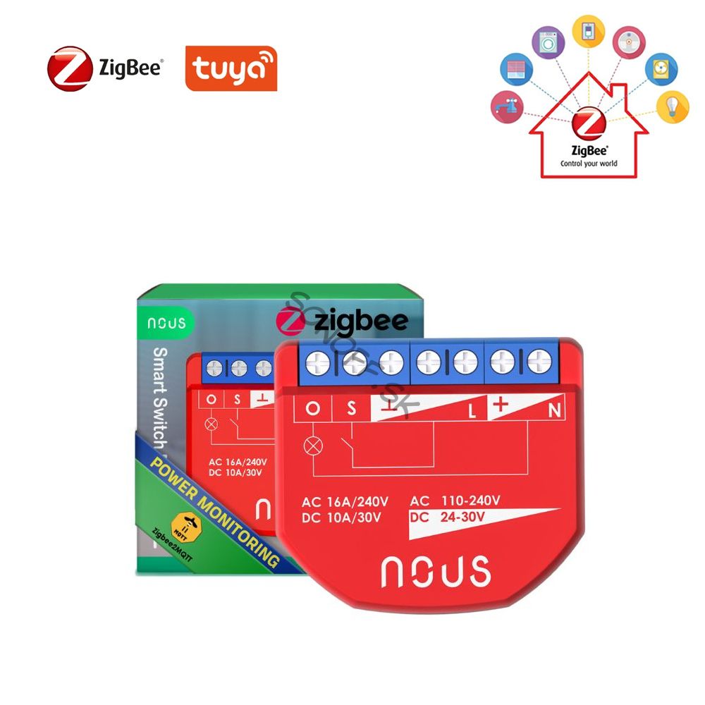 Inteligentný mini reléový modul Nous B2Z Tuya Zigbee s meračom spotreby a spínacím vstupom, 1-násobný : Nous B2Z smart Tuya Zigbee mini relay module, with power meter and switch input, 1-gang Nous B2Z je 1-kanálové inteligentné relé vybavené čipom Zigbee Tuya s meračom spotreby energie. Je určený na použitie v nástenných boxoch za zásuvkami alebo vypínačmi na ovládanie a meranie ich spotreby pomocou aplikácie Tuya/SmartLife smart home.
